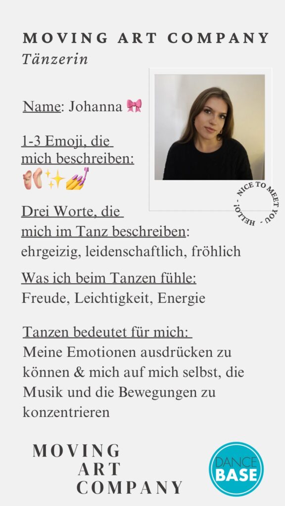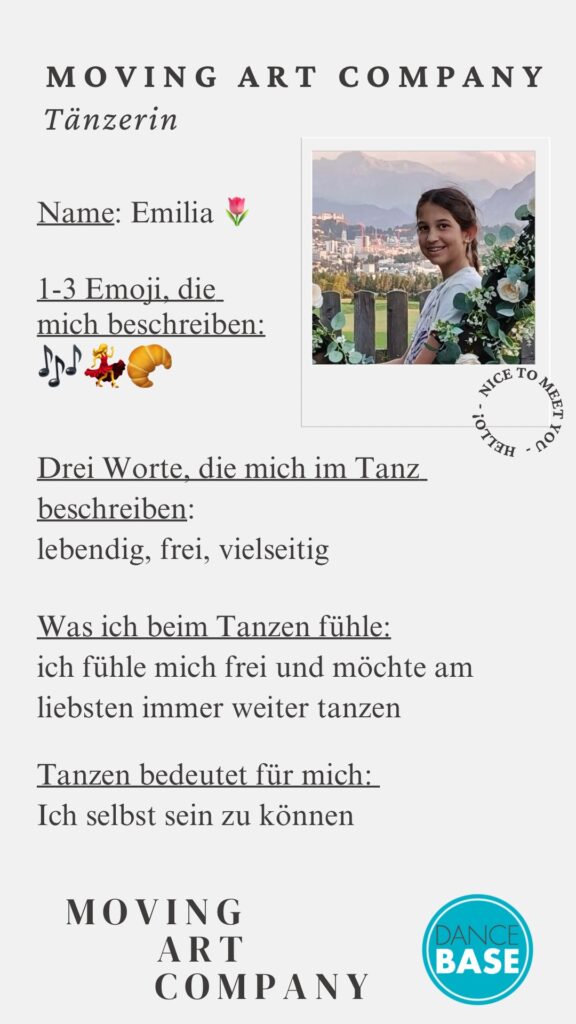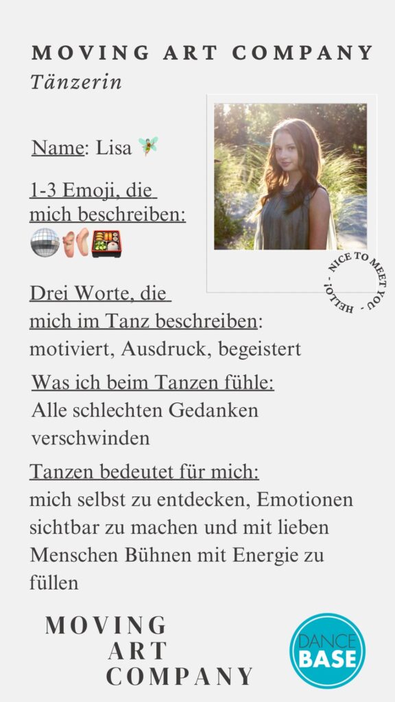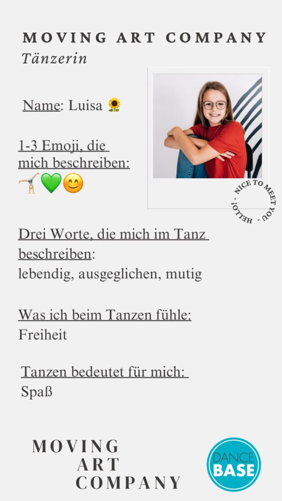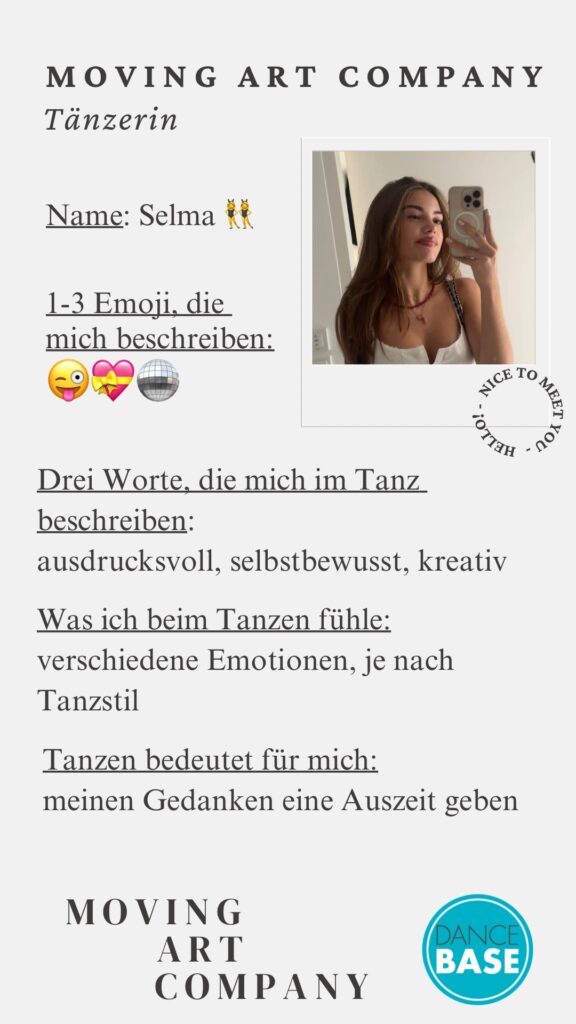 Aus dieser Motivation entstand zunächst eine MasterClass für besonders engagierte Tänzerinnen. Daraus entwickelte sich Schritt für Schritt eine Vision: ein Raum für künstlerisches Wachstum, Gemeinschaft und persönliche Entwicklung. So wurde die MovingArt Company zu einem Herzensprojekt, das jungen Tänzerinnen die Möglichkeit gibt, ihr Potenzial zu entfalten und Tanz als das zu erleben, was er sein kann: