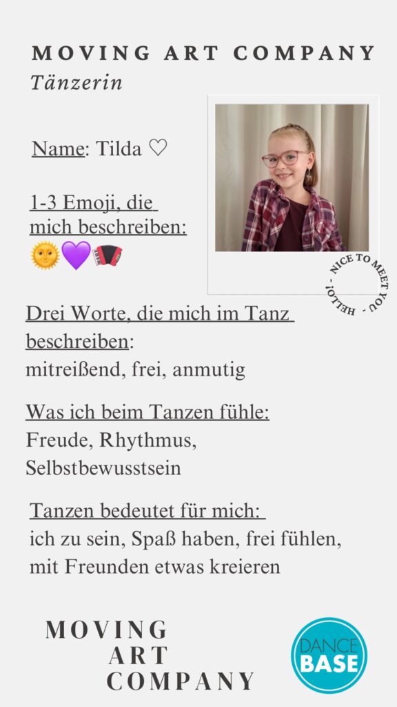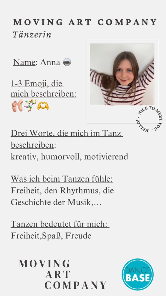 Die MovingArt Company ist mehr als eine Tanzgruppe. Sie ist ein kreativer Raum für junge Tänzerinnen, die mehr wollen: mehr Ausdruck, mehr Entwicklung, mehr gemeinsames Wachsen.